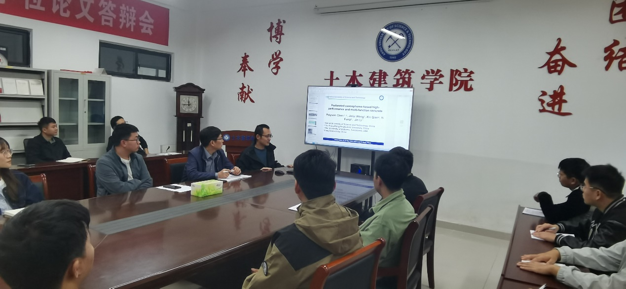 之后,陈佩圆副教授简要介绍了香港以及香港理工大学的基本情况,从研究团队、科学研究以及心得体会等方面分享了他在香港的收获。随后,他做了题为《低收缩高性能混凝土》的学术报告。
