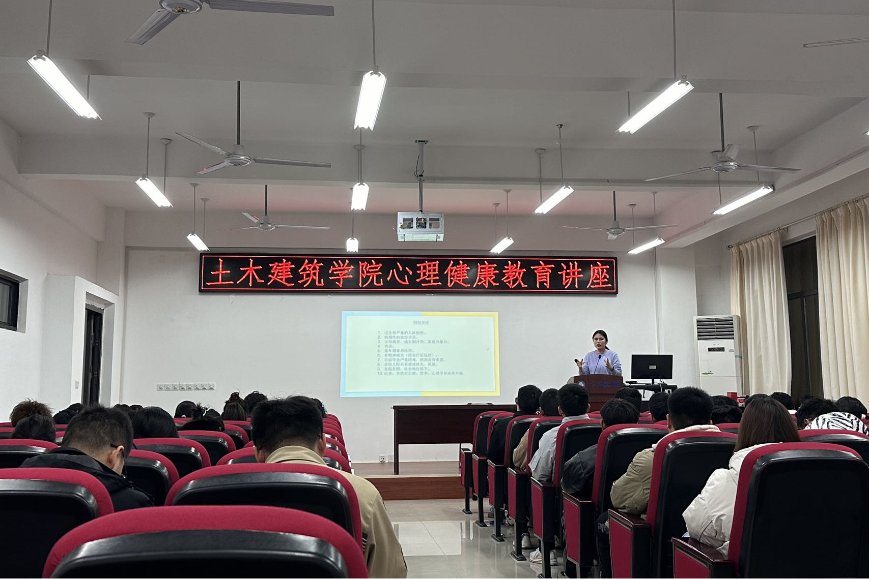 12月4日土木建筑学院开展心理健康专题讲座,本次讲座邀请校心理健康教育中心王晓琳老师进行培训,全院100余名班级心理委员和“一站式”学生社区心理健康宣传员参与培训。