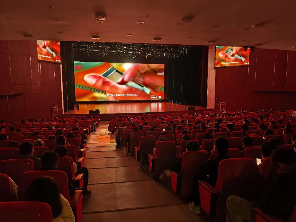 活动现场,师生们有序入座,全神贯注地投入到电影情节中。《孤注一掷》以紧张刺激的剧情和深刻的社会现实展现了诈骗分子的狡猾残忍和受害者的悲惨遭遇。影片中,一个个令人痛心的案例让观影师生深刻认识到诈骗的危害性,同时也让师生认识到了各种常见的诈骗类型、手段以及相关防范方法。通过观影的方式,师生们不仅对诈骗有了更直观的认识,更在潜移默化中增强了自身的反诈意识和识别诈骗的能力。