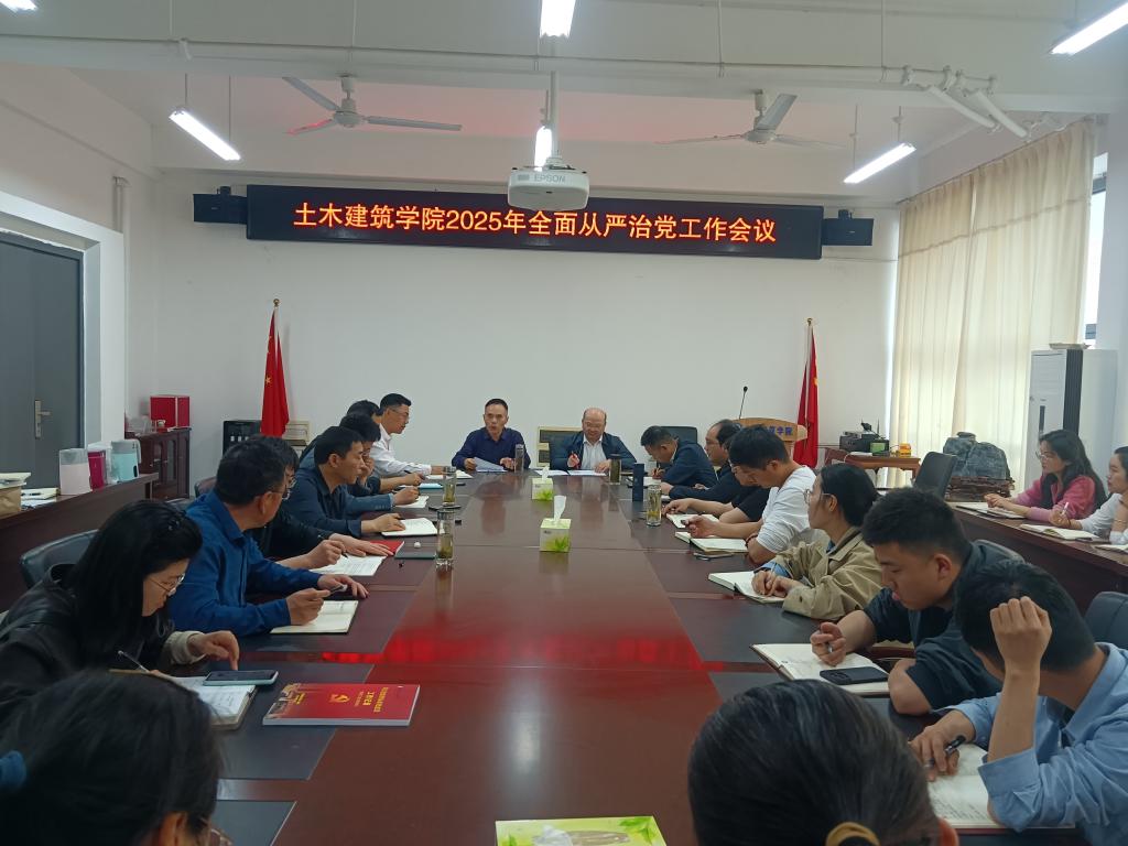4月9日,土木建筑学院党委在231会议室召开2025年全面从严治党工作会议。会议传达学习了习近平总书记二十届中央纪委四次全会重要讲话精神,传达学习了全省教育系统和学校2025年全面从严治党工作会议精神。会议由院党委副书记、院长荣传新主持。