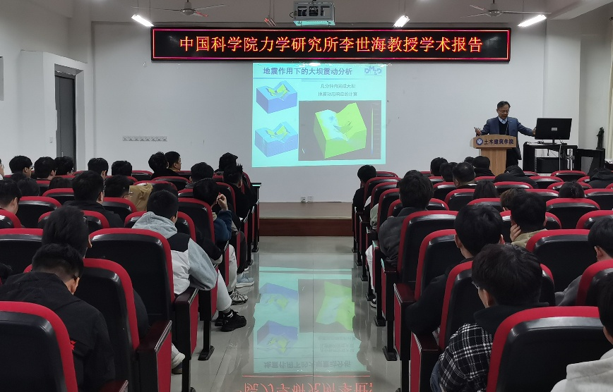 10月20日下午,中国科学院力学研究所李世海教授应邀来校交流,并在我院227会议室作学术报告。报告会由院长荣传新教授主持,副院长王长柏出席,近百名师生到场聆听。