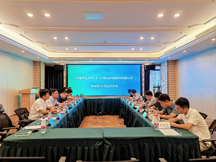 为了优化智能建造人才培养方案,促进专业良好发展。8月23日上午,广联达科技股份有限公司数字高校BU战略客户部总经理朱飞一行8人到访安徽淮南,土木建筑学院副院长蔡海兵与智能建造专业青年教师就专业建设、人才培养、科学研究等方面与广联达公司展开深入交流。