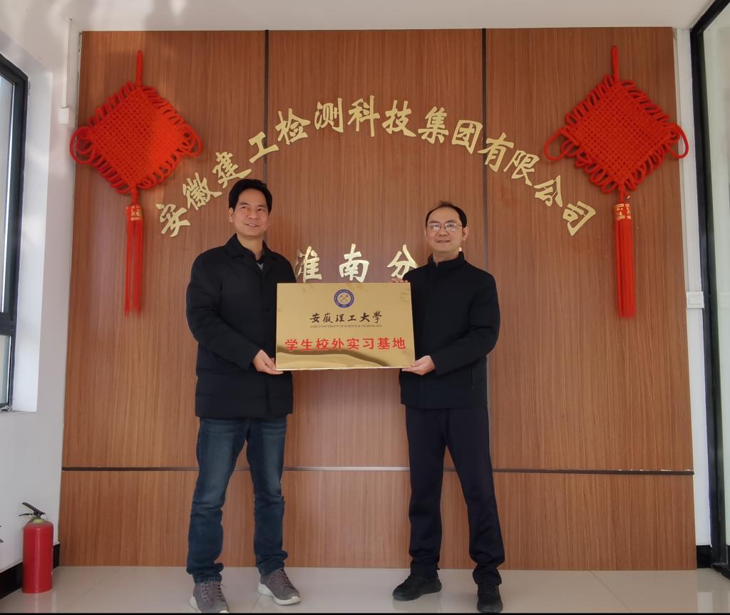 座谈会后,土木学院教师一行参观了安徽建工检测科技集团有限公司淮南分站检测实验室,并与企业签署了《学生校外实习基地协议书》,举行了实习基地揭牌仪式。