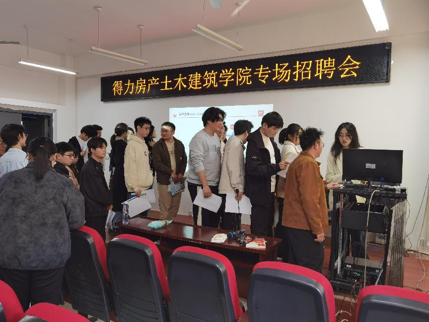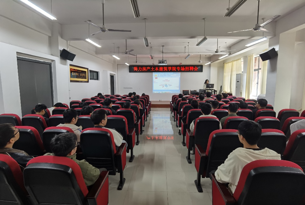 3月22日,土木建筑学院在求是楼南227报告厅举办得力房地产有限公司2025届毕业生专场招聘会。来自土建、地环、电气等学院100余名毕业生参加了招聘会,会议由学院党委副书记张向林主持。