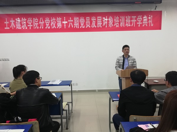 10月19日晚,土木建筑学院分党校在求是楼南227教室举行第十六期党员发展对象培训班开学典礼。院党委书记、分党校校长徐冬生在开学典礼上讲话。