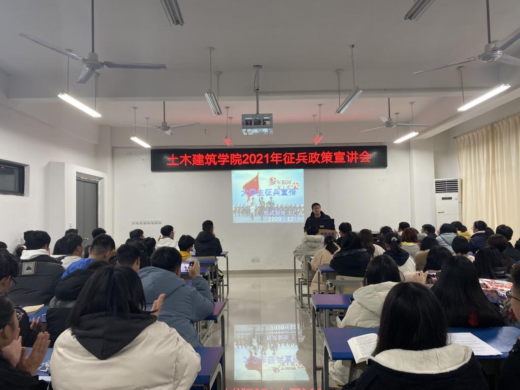 此次征兵政策宣讲会的召开,使得学院师生充分了解到征兵工作的重要意义,激发了土木建筑学院学生参军报国热情,营造了“关心国防、热爱国防”的浓厚氛围,推动了学院征兵工作的开展。