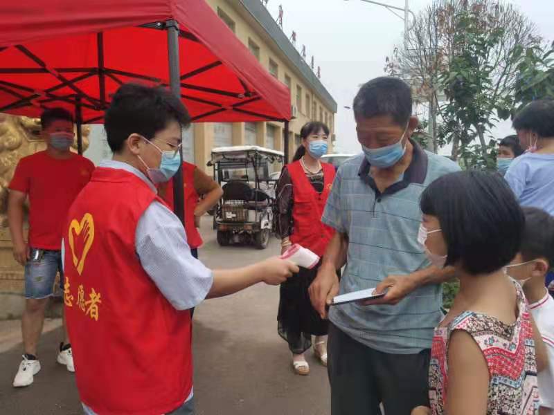 赵千千是学生第四党支部的一名入党积极分子,他积极响应义门古镇志愿者的招募,投身于疫情防控志愿服务。他作为志愿者帮助镇村干部完善居民新冠疫苗接种的基本情况和信息,跟着其他工作人员一起入户宣讲防疫知识、登记信息、执勤站岗等。穿着红马甲,手拿测温枪,他用实际行动筑起“家门口”的防疫屏障,展现了大学生志愿者的责任担当和青春力量。