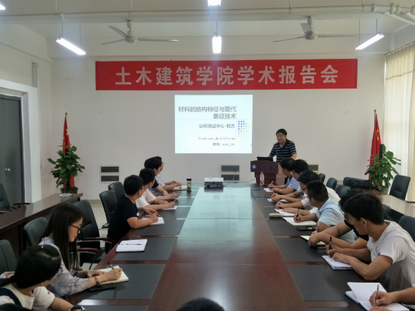7月31日下午,土木建筑学院邀请校分析测试中心主任何杰教授在求是楼南231会议室作学术报告。报告会由院长马芹永教授主持,学院部分教师、假期留校学习的博士生和硕士生40余人聆听了报告。