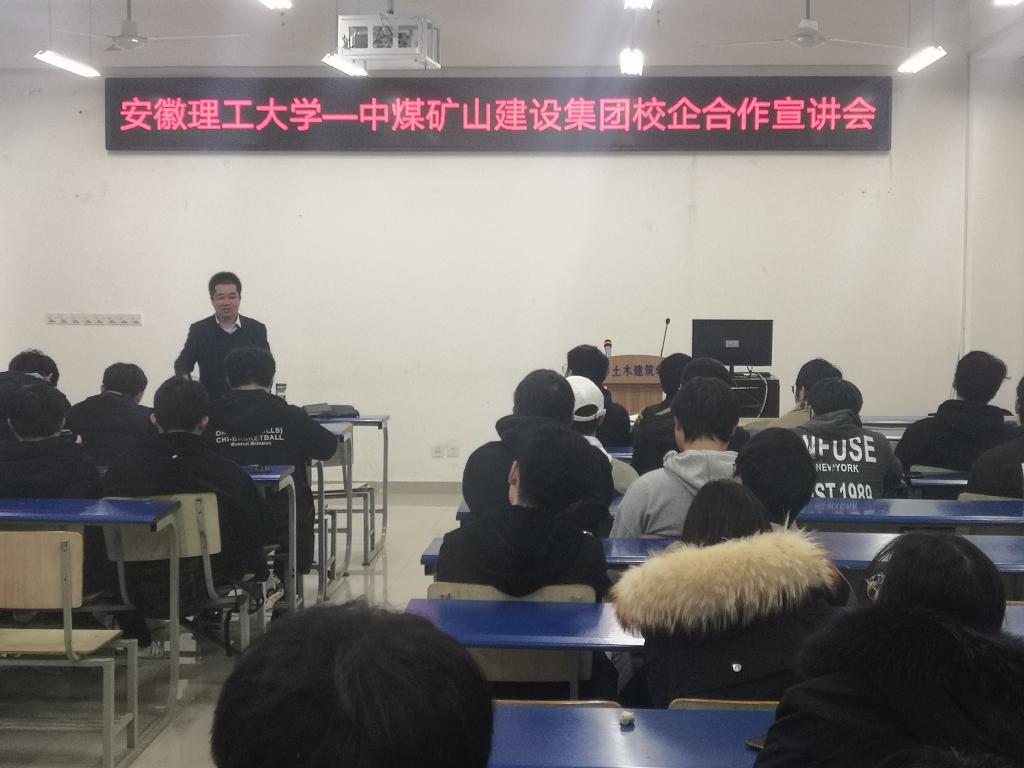 座谈结束后,中煤矿建集团举办校企合作联合培养实验班方案宣讲会,就同学们非常关心的选拔条件、专业要求、企业激励措施、联合培养模式、违约责任及公司发展平台与机会等问题作了详尽的解答和分享,取得了良好的效果。