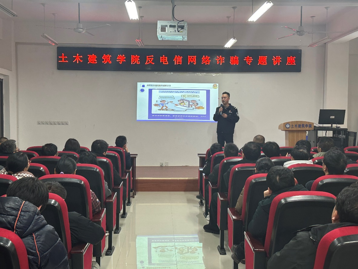 为增强教职工防范诈骗意识,12月31日下午,土木建筑学院在南227报告厅举办反电信网络诈骗专题讲座,本次活动由淮南公安局山南新区分局王远警官担任主讲。