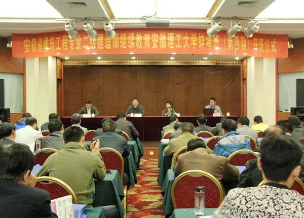 受省建设厅和省建协的委托,4月17日上午,由土木建筑学院承担的“安徽省建筑工程专业二级建造师继续教育安徽理工大学蚌埠班(第四期)”培训在蚌埠市顺利开班。安徽省建筑业协会许晓庆、陈妍妍、土木学院副院长吴秉江、蚌埠市建管处有关同志等出席了开班仪式。