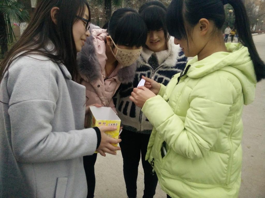 本次活动,由同学们在爱情湖、女生宿舍楼外等学校主要地点设立活动点,随机邀请同学们参与安全知识问答。给答对问题的同学赠送平安锦囊,答错者则需要写上一段祝福语塞入空锦囊。同学们积极参与,认真答题,在增长自己安全知识的同时,也送出了祝福,将温暖传递整个校园。