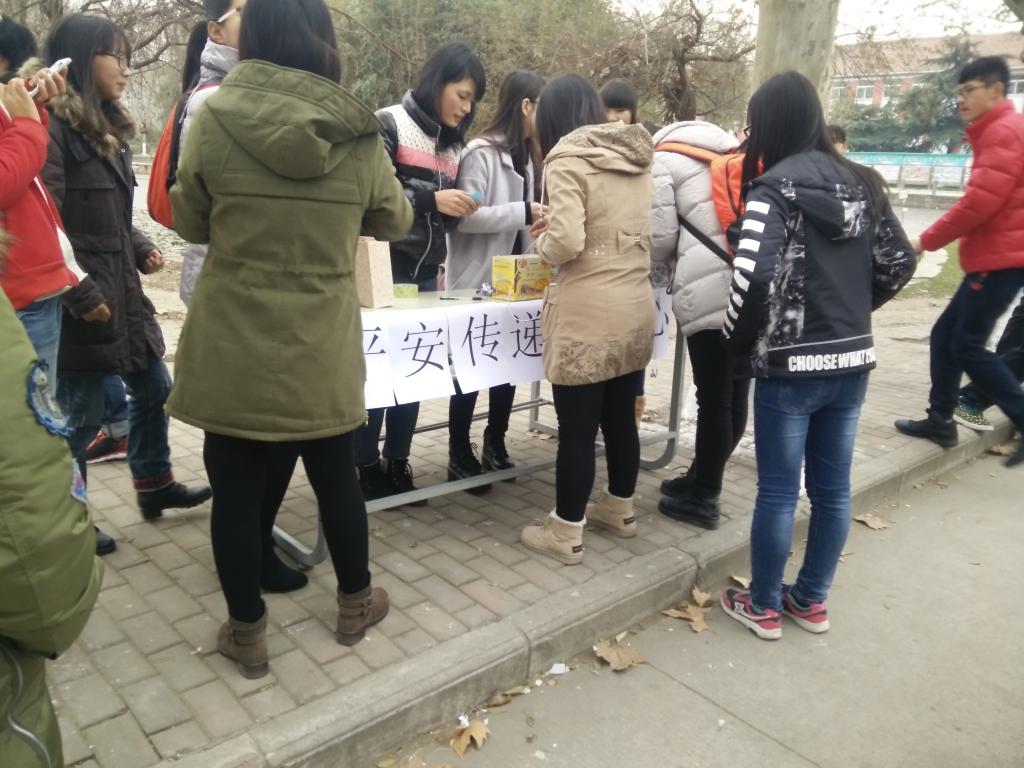 为积极响应学校冬季学生安全教育管理工作,12月12日,土木建筑学院2014级学生在北校区校园内举办了“校园安全月”系列活动之——“平安锦囊,传递温暖”。此次活动由土木建筑学院主办,全校学生参与互动。