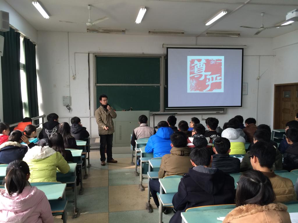 交流会伊始,辅导员首先总结了2015年首届“互联网+“大学生创新创业大赛的比赛经验,列举了所获得的成绩,包括创意组省级银奖一项、校级一等奖两项。将优秀的项目作品介绍给其他同学,详细剖析了项目内涵、商业计划书以及项目设计的行业痛点。