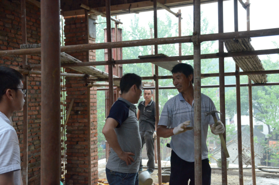 帮扶师生在施工现场与村民交流(摄影 徐炜康)