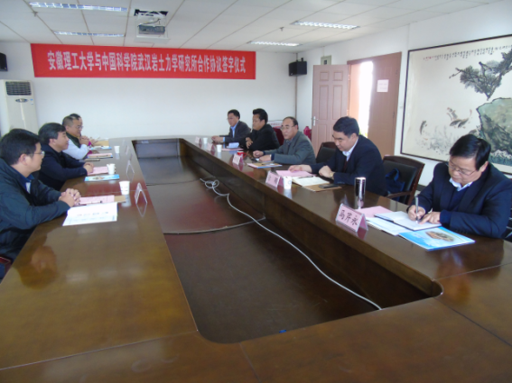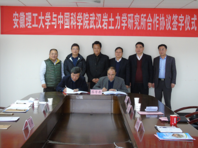 本着“优势互补、互利双赢、资源共享、共同发展”的原则,我校与中国科学院武汉岩土力学研究所经过友好协商,同意在研究生培养、科学研究、科研平台建设、学术交流等方面开展全面合作。11月15日,安徽理工大学、中国科学院武汉岩土力学研究所校所科教协同创新平台框架协议在校行政楼14楼会议室举行。副校长郑明东教授与中国科学院武汉岩土力学研究所副所长盛谦研究员共同签订了校所合作协议。签字仪式由校研究生院常务副院长徐颖教授主持。