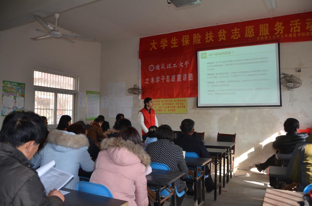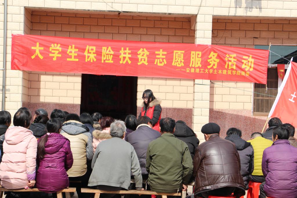 2月11-17日,土木建筑学院“土木学子志愿宣讲团”利用寒假在枞阳县横埠镇周岗村开展保险扶贫志愿服务活动。