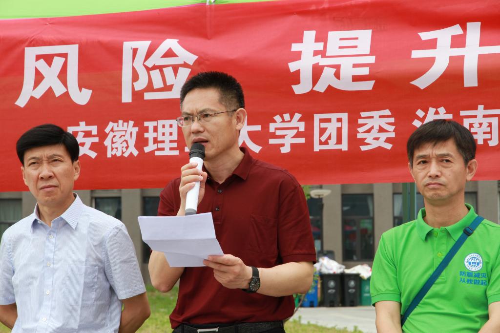 启动仪式上,校纪委书记周峰、淮南市地震局副局长韩杰,分别做了讲话。周峰在讲话中指出,今年的“防灾减灾”科技宣传周活动,学校将通过开展防灾减灾科普宣传,知识讲座,技能培训,作品大赛等活动,进一步增强广大师生防灾减灾意识,提高综合减灾能力。他希望,一是不断创新宣传教育形式,普及防灾减灾知识和技能,开展有针对性的防灾减灾宣传教育活动。二是强化灾害风险防范,扎实推进隐患排查治理。三是希望广大同学立足专业,积极钻研,设计、建设出更加安全、舒适的居住条件,努力担负社会责任,为人民的幸福安全贡献自己的力量。韩杰说,防灾减灾科技宣传意义重大,希望我们携起手来,万众一心,弘扬防灾减灾文化,提高防灾减灾意识,为推动我市防灾减灾事业的发展贡献出一份自己的力量。