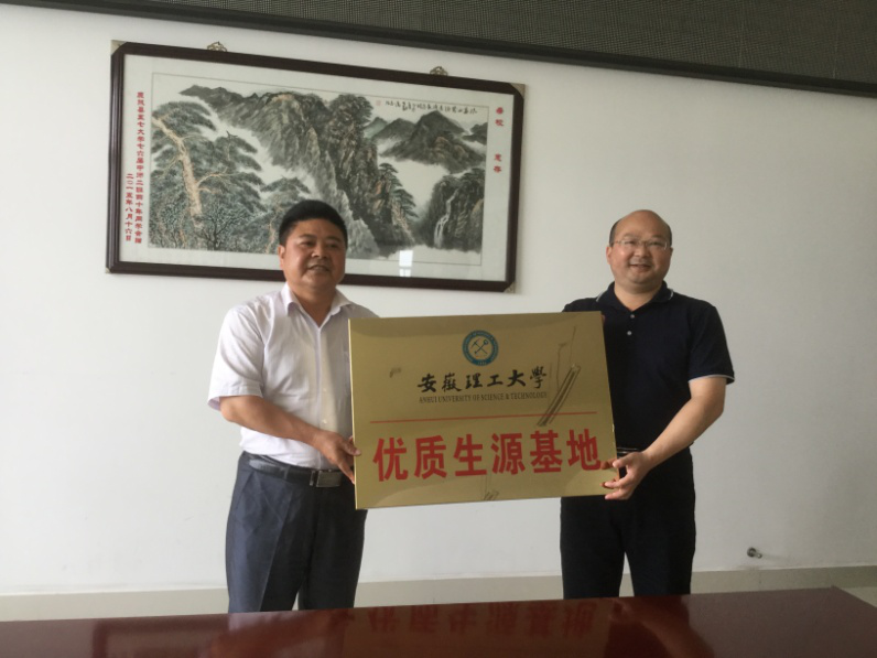 荣传新副院长代表学校与查建宁校长、程根苟校长签署了“安徽理工大学优质生源基地”共建协议书并授予安徽理工大学“优质生源基地”牌匾。