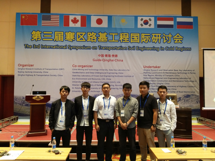 7月6-7日,由青海省交通科学研究院、北京交通大学、美国伊利诺伊大学香槟分校、俄罗斯西伯利亚铁路交通国立大学等主办的第三届寒区路基工程国际研讨会在青海贵德隆重召开。来自中科院西北生态环境资源研究院、青海省交通科学研究院、北京交通大学、美国阿拉斯加大学、俄罗斯西伯利亚铁路交通国立大学、日本北海道大学等单位,200余名代表参加了本次会议。我校土木建筑学院博士研究生马冬冬、林键、段寅、王志,硕士研究生钱叶宇、王儒默参加研讨会。马冬冬博士生代表课题组作了题为“SHPB Tests and Dynamic Constitutive Model of Artificial Frozen Sandy Clay under Confining Pressure State”的学术报告。