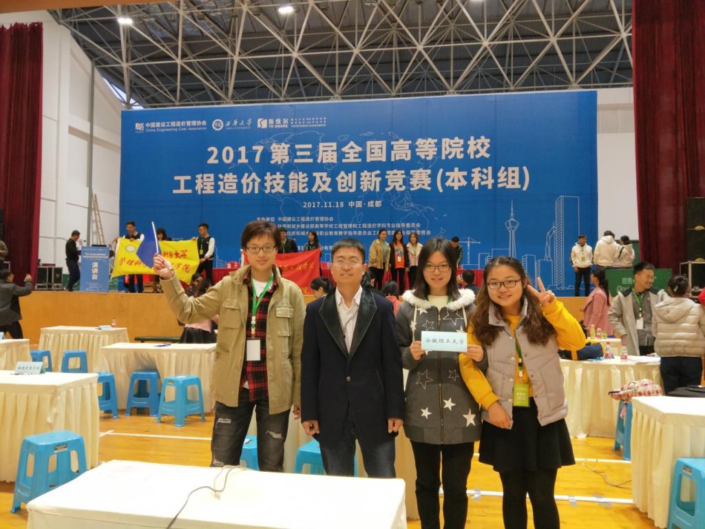 11月18日,第三届全国高等院校工程造价技能及创新竞赛(本科组)在西华大学举行。我校土木建筑学院代表队参赛并荣获两个单项一等奖和团体二等奖。