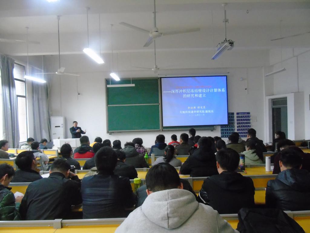 11月21日下午,中煤科工集团天地科技建井研究院副院长、煤矿深井建设技术国家工程实验室李功洲研究员应邀来我校作学术报告,报告会在明理北104教室举行,土木建筑学院院长马芹永教授主持报告会。土木建筑学院教师、土木工程博士和硕士研究生聆听了报告会。