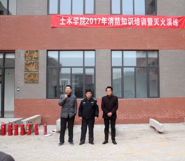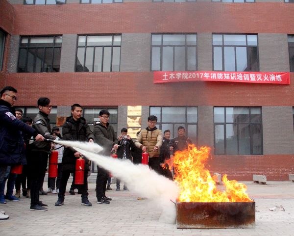 为切实贯彻《安徽理工大学岁末年初安全生产大检查大整治工作实施方案》、《安徽理工大学冬春火灾防控工作方案》两个文件精神,加强消防安全知识宣传,增强师生安全防范意识,使师生真正掌握消防安全常识,12月27日下午,应土木建筑学院邀请,校保卫处卢传江、卢万宝、彭广峰老师在土木学院楼下广场举行了消防安全知识培训及灭火演练。学院党委书记盛真、副院长吴秉江以及200余名师生参加了此次活动。培训会及灭火演练由吴秉江主持。