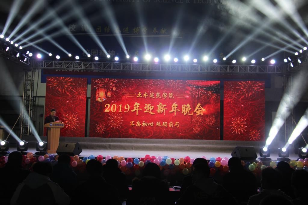 1月6日晚,土木建筑学院在厚德馆举办了2019年迎新年晚会,相关职能部门领导、学院党政领导和学院师生800余人共同观看了晚会。