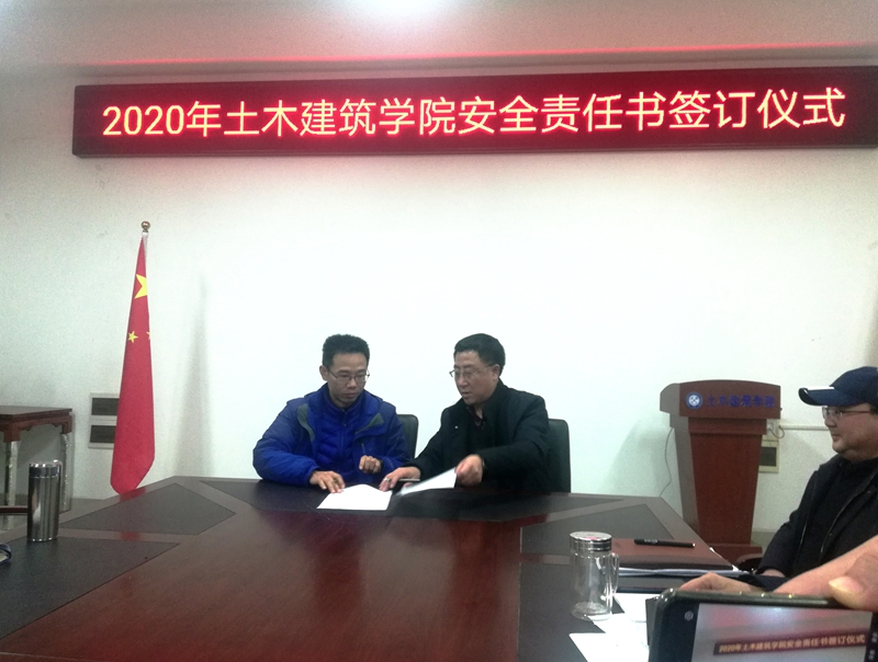 会上,学院党委副书记、副院长(主持工作)庞建勇传达了安徽省教育厅《关于进一步做好学校安全工作的通知》、《安徽理工大学关于做好学校今冬明春安全工作的通知》两个文件精神并与各教研室、实验室等单位负责人签署了2020年安全责任书。