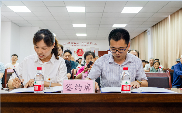 土木建筑学院学生第四党支部书记任少伟与横塘村党总支书记兼村委会主任黄梅共同签署《“舜耕基层党建先锋共同体”共建协议》。