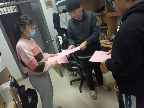 宿舍普“法”,融入日常。辅导员、学生会干部带上国家安全教育法宣传材料,深入每个宿舍,通过发放宣传单、问答互动和讲解等形式,宣传有关法律的基本常识和生活中常用的法律知识,提醒同学们强化安全意识,提高安全防范能力。