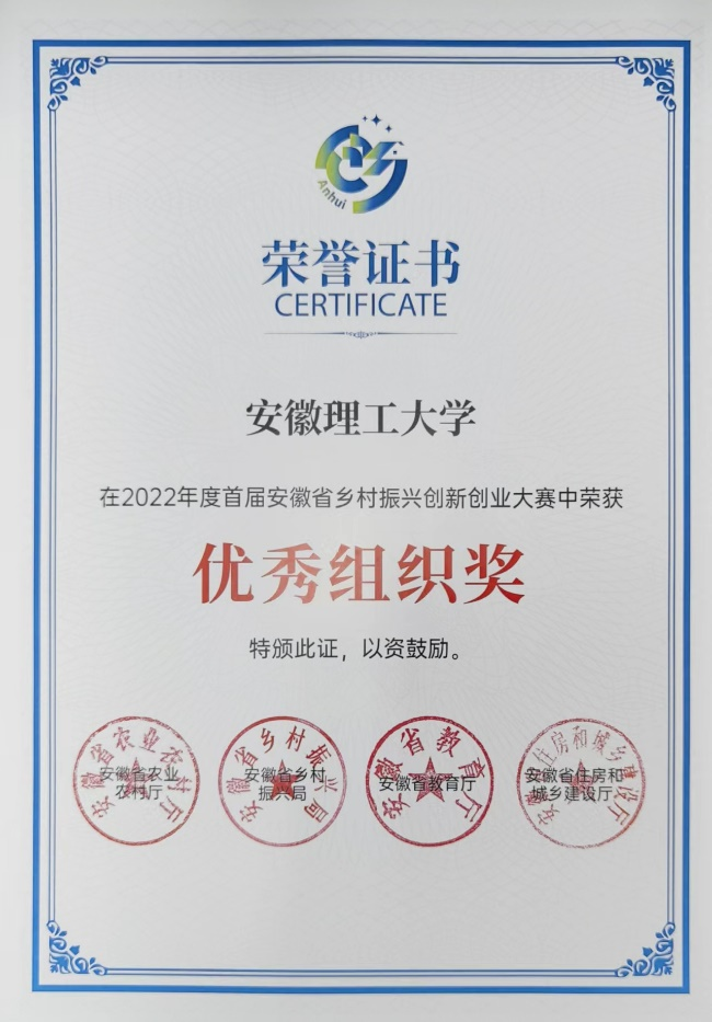 安徽省乡村振兴创新创业大赛由安徽省农业农村厅、省乡村振兴局、省教育厅、省住建厅联合主办,安徽建筑大学、安徽大学、安徽理工大学、安徽农业大学等13家单位联合承办,颁奖典礼在合肥举行,来自安徽省直有关部门、有关高校负责同志以及相关市县负责人、新闻媒体、获奖选手代表、优秀指导老师代表以及全国乡村振兴领域有关专家、商协会代表、企业代表参加。
