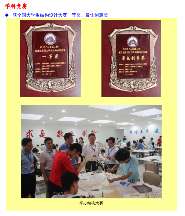近年来,学院承担国家级和省部级等纵向科研课题130余项,横向经费达9000余万元;获国家科技进步二等奖4项,省部级科学技术奖励37项,其中省级一等奖6项、二等奖10项、三等奖20项;获国家发明专利60余项;发表学术论文1100余篇,其中SCI、EI收录200余篇;出版专著和规划教材70余部。为学院的人才培养和学科建设,不断提升土木建筑学院的办学实力,把我院建设成为国内知名的学院奠定了雄厚的基础。