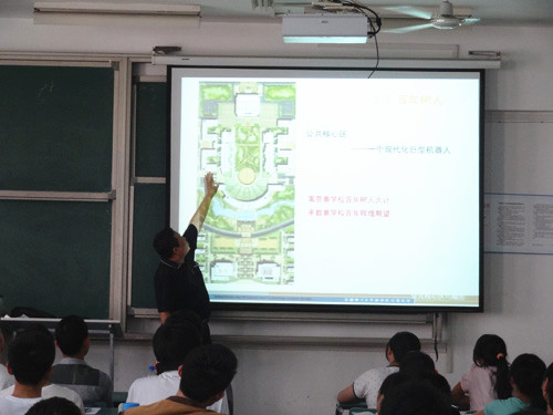 6月14日下午,后勤与国有资产管理处处长欧阳连勤受邀在北区实验楼207教室为土木学院低年级学生讲授新校区建设理念。