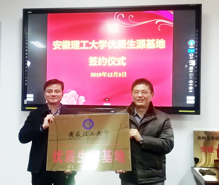 为提升学校影响力,吸引更多优质生源,12月3日,土木建筑学院党委书记徐冬生、党委副书记赵军一行赴池州市第一中学建立“安徽理工大学优质生源基地”。