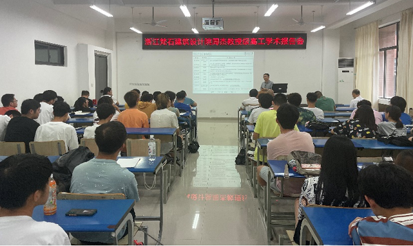 报告会上,中建五局杨勇教授级高工以《智能建造专业与建筑业可持续发展的思考》为题,从政策背景、当前情况以及迎接未来3个方面系统的介绍了智能建造的概念、发展现状及面临的挑战,并结合自己的学习、工作经历向在校大学生提出了宝贵建议。浙江梵石建筑设计管理研究院周杰教授级高工以《智能制造大背景下的钢结构装配式建筑的发展与应用》为题,介绍了装配式建筑的发展历程,列举了大量的工程应用案例,并对智能制造大背景下的装配式建筑的发展趋势提出了自己的看法。