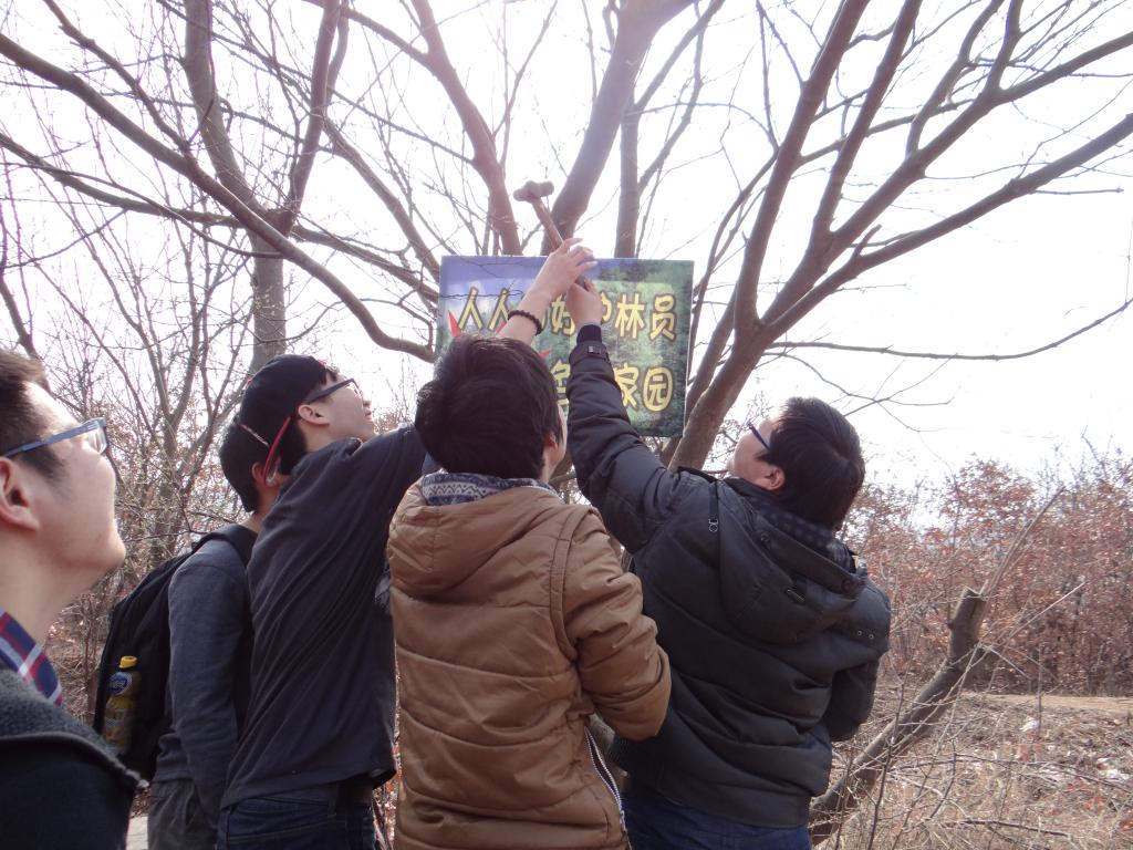 一大早,同学们便来到了淮南市大通湿地,向湿地负责人道明来意后,领取了十几块防火宣传牌,便开始了挂牌活动。在活动中,同学们根据牌子的不同内容,分别选择了合适的地理位置,然后用铁丝和锤子将消防宣传牌固定在树上较显眼的位置。宣传牌挂好以后,同学们走进湿地捡拾各种垃圾和杂物,并不时向市民宣讲生态文明知识,市民对志愿者们的行动纷纷竖起了大拇指。