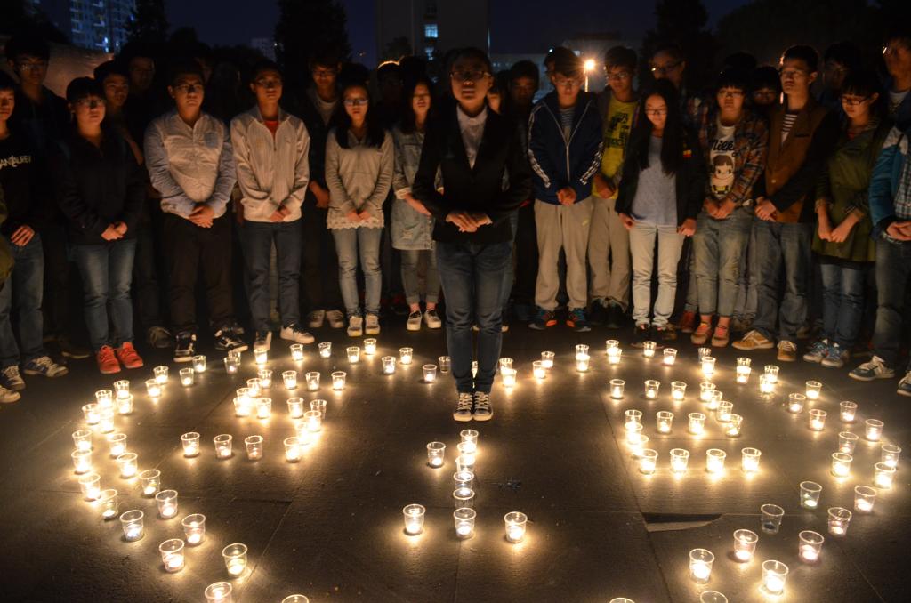晚上8点,同学们聚集在实验楼广场前,用白色蜡烛摆成“5.12”字样,围绕以心形图案,寓意着我校学子心系灾区。随后,在四川籍学生的带领下,同学们举行了庄严肃穆的默哀仪式。仪式过后,同学们驻足观看了防灾减灾专题图片展,认真学习了防灾减灾知识。