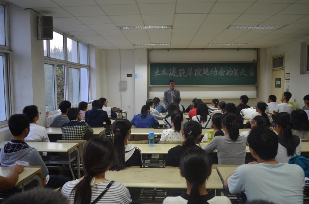 在校运动会到来之际,为充分调动全院运动员的积极性,保障学院运动会训练期间的各项工作的有序进行,10月17日下午,土木建筑学院在北校区3407教室召开动员大会,学院团委副书记黄广顺及学院运动员等100多人参加了会议。
