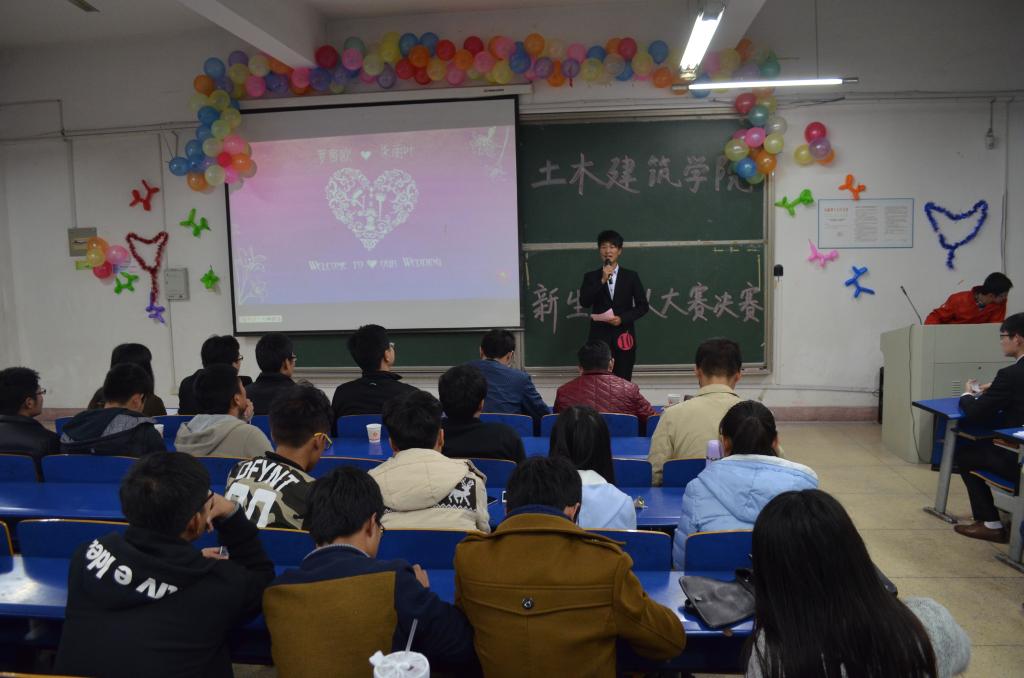 11月13日晚,土木建筑学院第八届主持人大赛决赛在北校区2101教室举行。学院党委副书记丁志强,院团委副书记黄广顺,张国胤以及2015级新生辅导员杨旭东、张金松担任评委,学院近200余位同学观看了比赛。