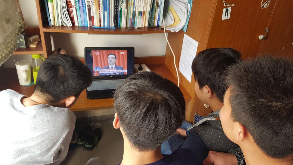 据悉,两会召开期间,学院各年级班级同学还通过观看直播、新闻网页等不同的形式关注两会。