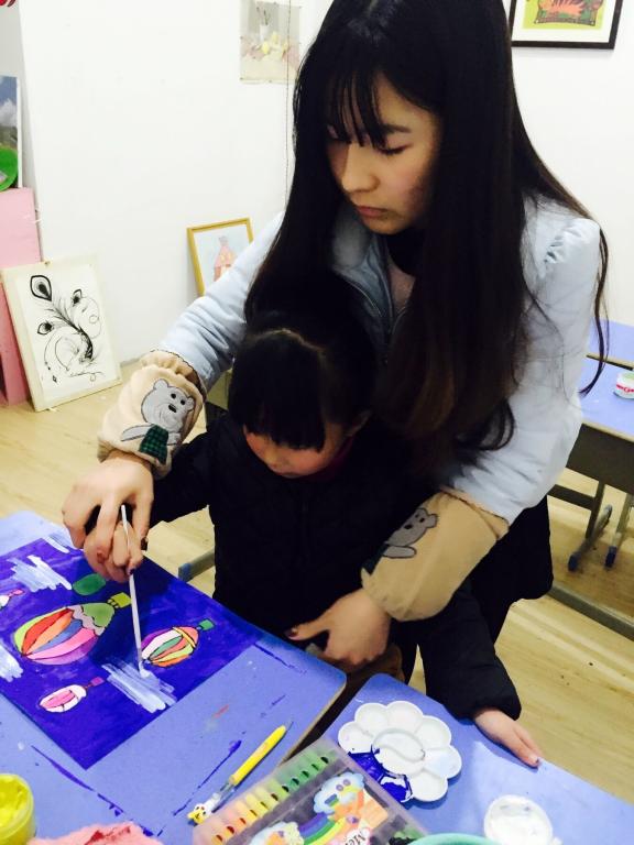 志愿者手把手教儿童画画