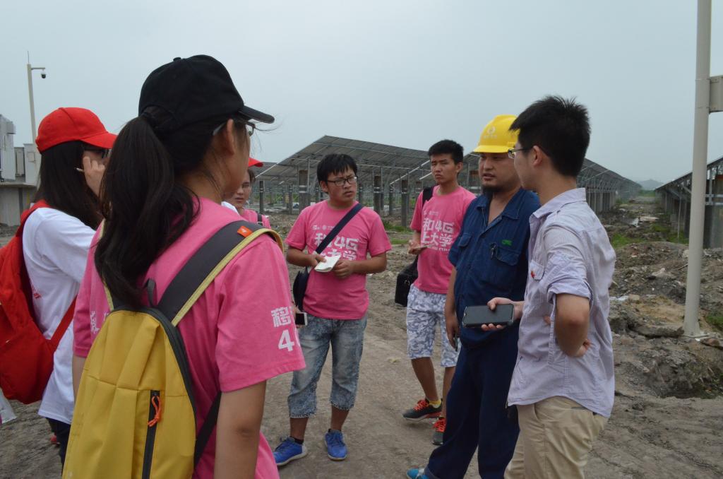 在孔集矿,淮矿孔李光伏发电站项目负责人夏师傅陪同调研,并对项目进行了详细介绍。
