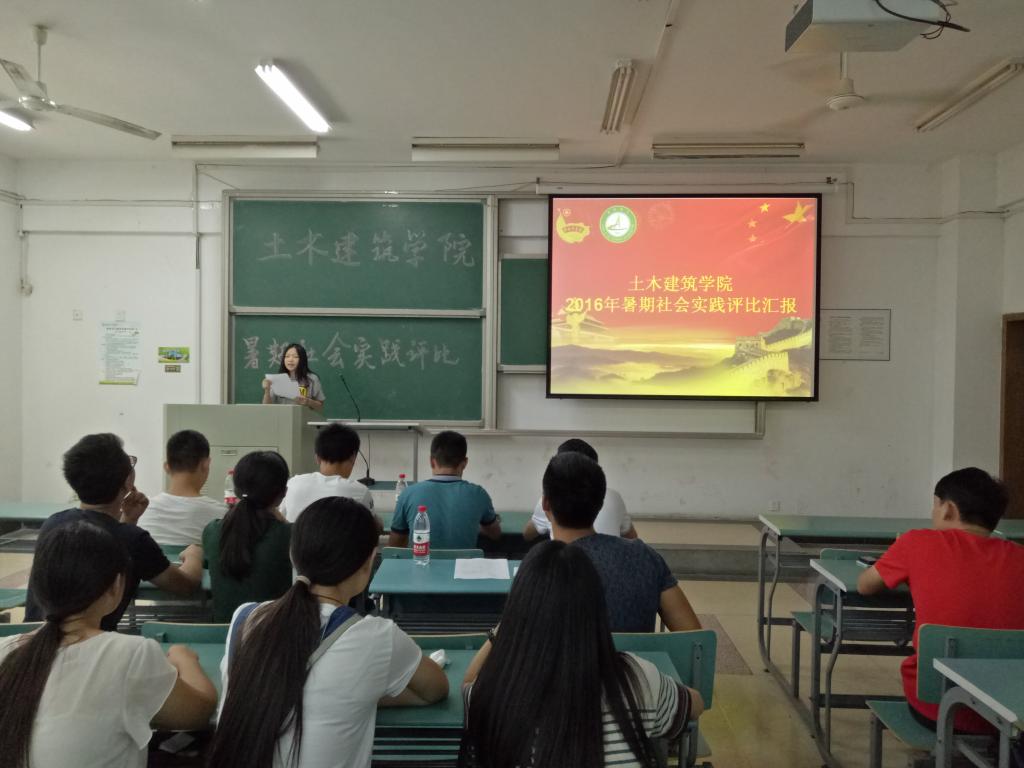 9月4日,土木建筑学院2016年暑期“三下乡”社会实践活动总结评审在北实201教室举行。学院团委副书记、学生会主席团成员及各年级实践团队代表40余人参加了评比会。