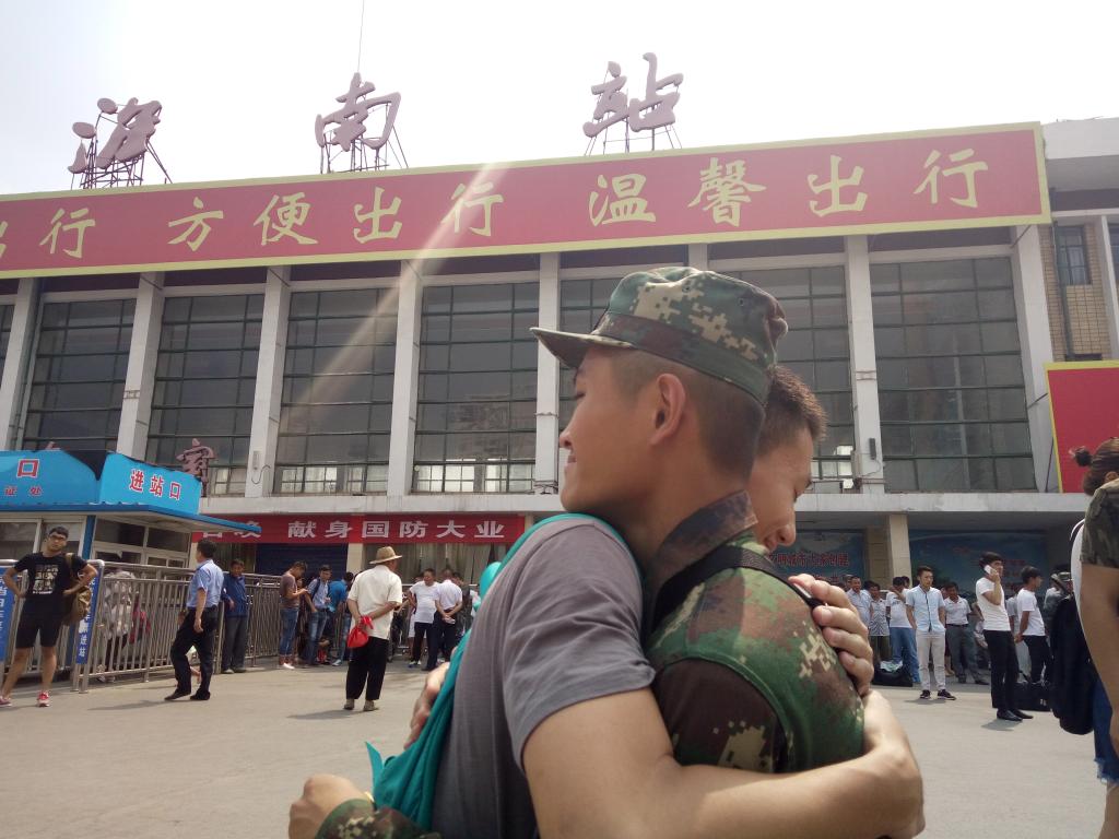 9月14日、15日,2015级土木工程15-6班团支部开展欢送孟盼盼、海涛同学应征入伍活动,全班同学送孟盼盼、海涛到火车站奔赴军旅。火车站里孟盼盼、海涛流下了男儿的热泪,男儿有泪不轻弹,只是未到情深处!
