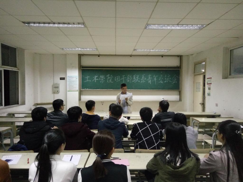 为了响应团中央号召,落实建立团干部直接联系青年制度,10月11日晚,土木建筑学院在3407教室开展团干部联系青年交流会,院团委书记黄广顺以及2015级19位班级团支书到场参加交流会。