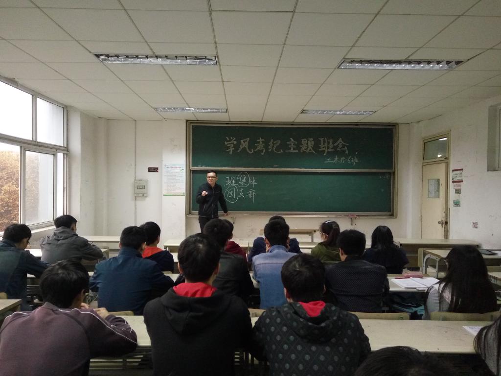 为加强土木15-6班团支部学生学风考纪意识,11月20日下午4点,土木建筑学院土木工程2015级6班团支部在北校区3407召开学风考纪主题班会,2015级辅导员杨旭东及6班34位同学参加班会,班会由团支部书记周凯峰同学主持。