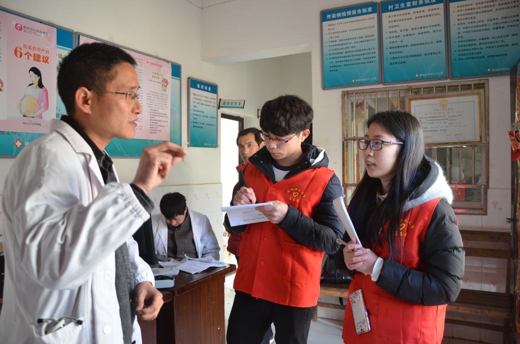 实践团队与铜陵市第二人民医院合作开展了健康知识讲座,同时为周岗村老年人、贫困户、低保户、五保户等进行免费的体检,实践队员此时担任起医师助理的身份,帮助医生专家们引领村民们有序的进行体检。