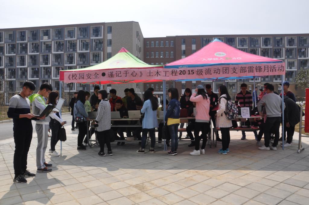 3月12日-15日,土木建筑学院土木工程2015级流动团支部在信苑中心广场开展雷锋服务月系列活动,活动有校园安全知识宣传、免费为同学们安装电脑常用基础软件(如Office、Auto CAD、天正建筑、VB、PS、PR等基础软件)、为淮南曹庵镇宋庄小学贫困留守儿童举办爱心募捐活动。活动现场人员火爆,学校各级同学纷纷前来参与活动,活动累积服务人次达600余人次。