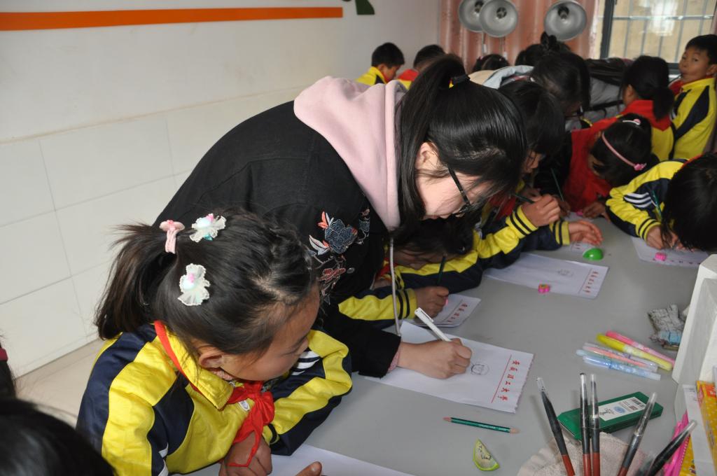 室内艺术课堂教学。小学里有专门的音乐室和绘画室,但是由于缺乏师资力量,这些设施都无法正式投入使用。志愿者准备了绘画、歌唱、架子鼓等艺术方面的教学,志愿者将带过来的铅笔、彩笔、绘图纸分发给小朋友,教他们简单的绘画,很快他们就学会的简单的绘画并将花画好的画送与了志愿者们。会唱歌、会打架子鼓的志愿者还分别教孩子们唱歌、打鼓。据孩子们介绍,他们日常只有数学和语文课,没有这些艺术课堂教学,此次艺术课堂教学开阔了他们的视野,丰富了他们的课堂种类。